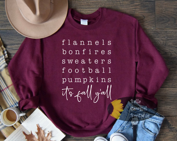 Flannels Pumpkins It's Fall Y'all Sweatshirt