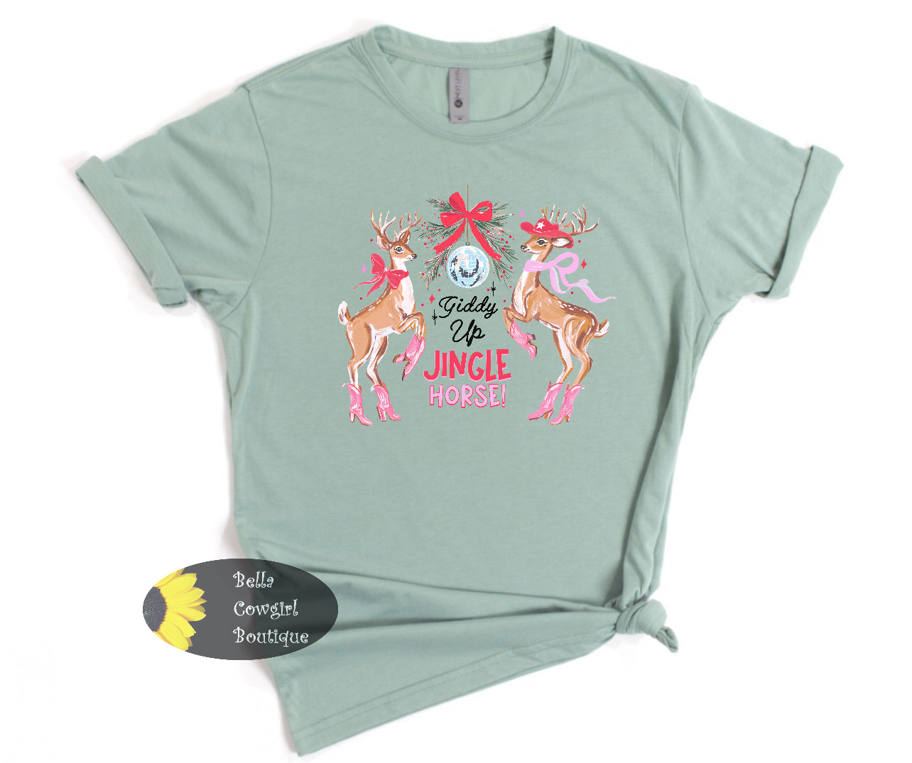 Giddy Up Jingle Horse Reindeer Pink Boots Western Christmas T-Shirt